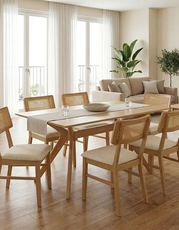 Δημιουργήστε έναν χώρο φιλοξενίας και ζεστασιάς στην τραπεζαρία σας με το σετ Raffles, που συνδυάζει την κομψότητα του φυσικού ξύλου με τη διαχρονική γοητεία του rattan. Iδανικό για να φιλοξενήσετε δείπνo με φίλους και οικογένεια, προσφέροντας άνεση και στυλ που διαρκεί.