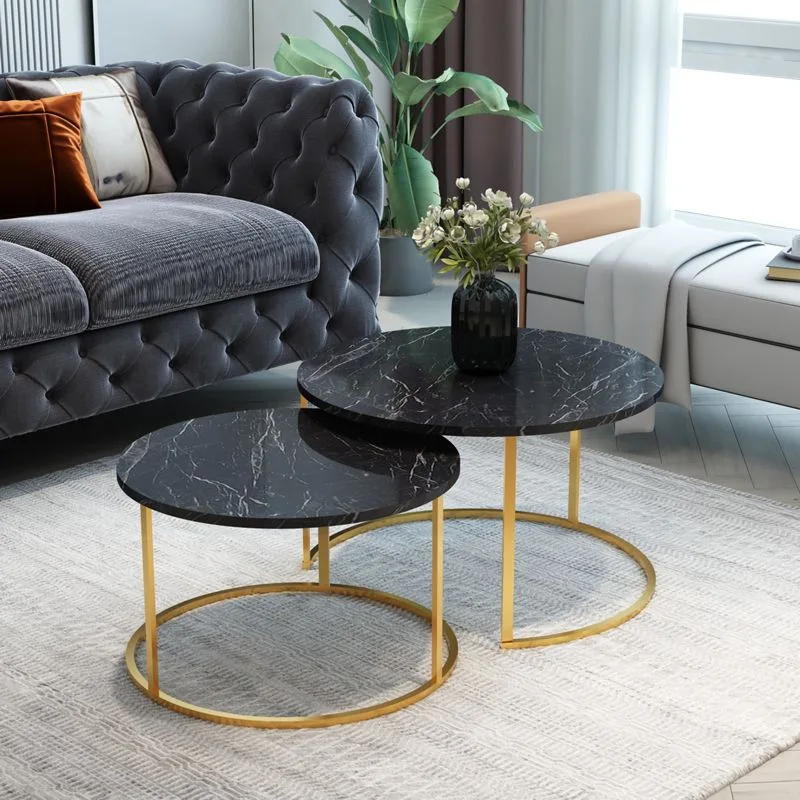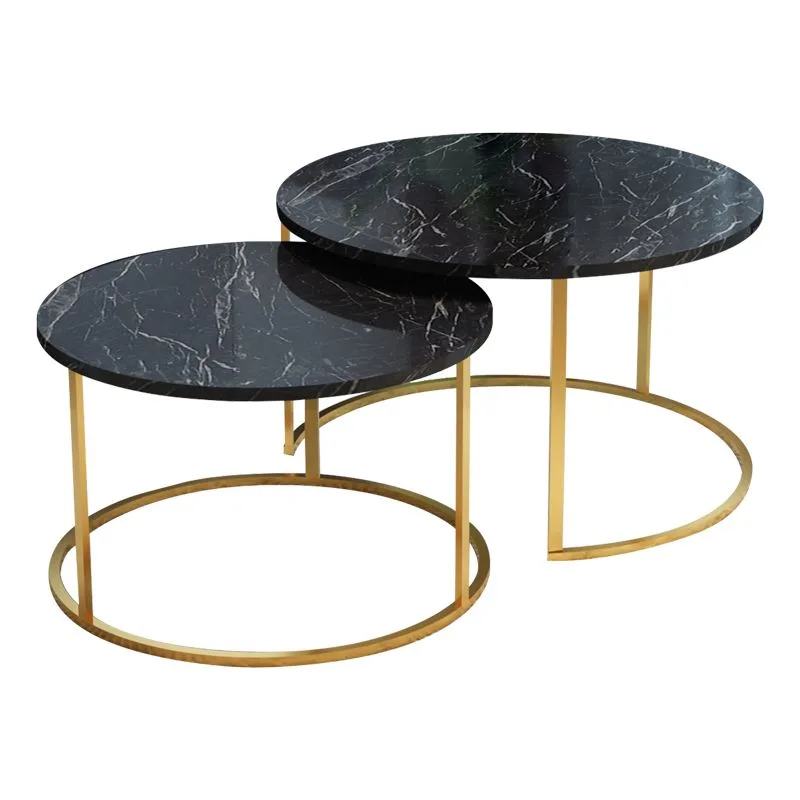 Τραπέζια σαλονιού Solme pakoworld σετ 2τεμ μαύρο μάρμαρου μελαμίνης-χρυσό μέταλλο Αν ψάχνετε τραπέζια σαλονιού να συνδυάζουν έναν μοντέρνο σχεδιασμό με