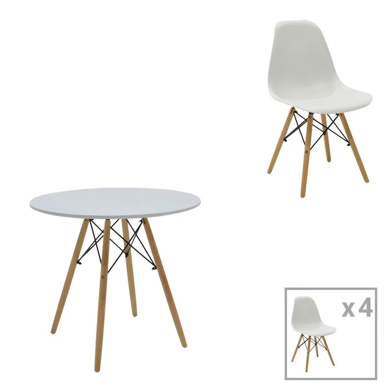 Τραπεζαρία Julita-Gaston σετ 5τεμ pakoworld MDF και ξύλο οξιάς σε λευκή-φυσική απόχρωση Φ80×73εκ κωδ. 0060-200-001242
