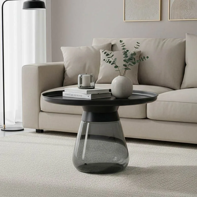 Βοηθητικό τραπέζι Kunlo μαύρο μέταλλο-μαύρο γυαλί Φ60×42εκ
