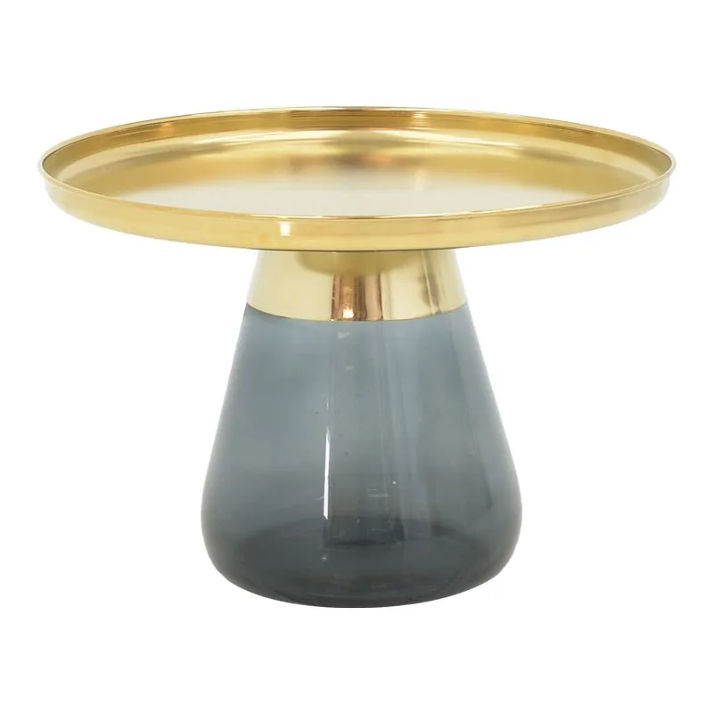 Βοηθητικό τραπέζι Kunlo χρυσό χρώμιο-μαύρο γυαλί Φ60×42εκ