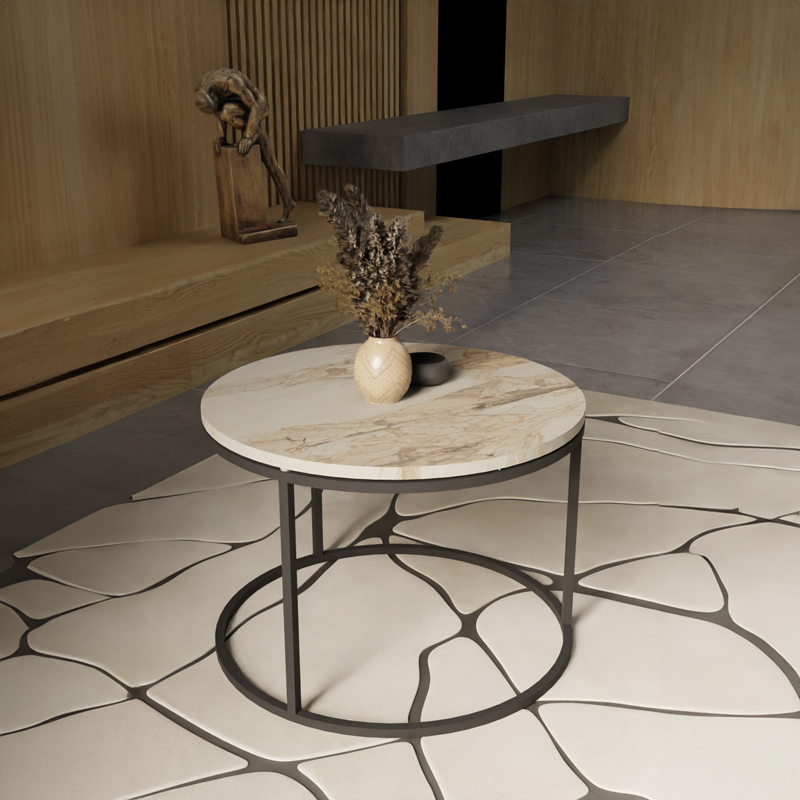 Τραπέζι σαλονιού Drion pakoworld λευκό μαρμάρου μελαμίνης-μαύρο μέταλλο Φ60×40εκ