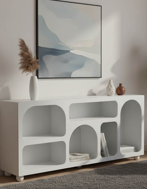 Μπουφές Emersi pakoworld με ράφια mdf σε λευκή απόχρωση 164x34x76εκ κωδ. 0060-260-000038