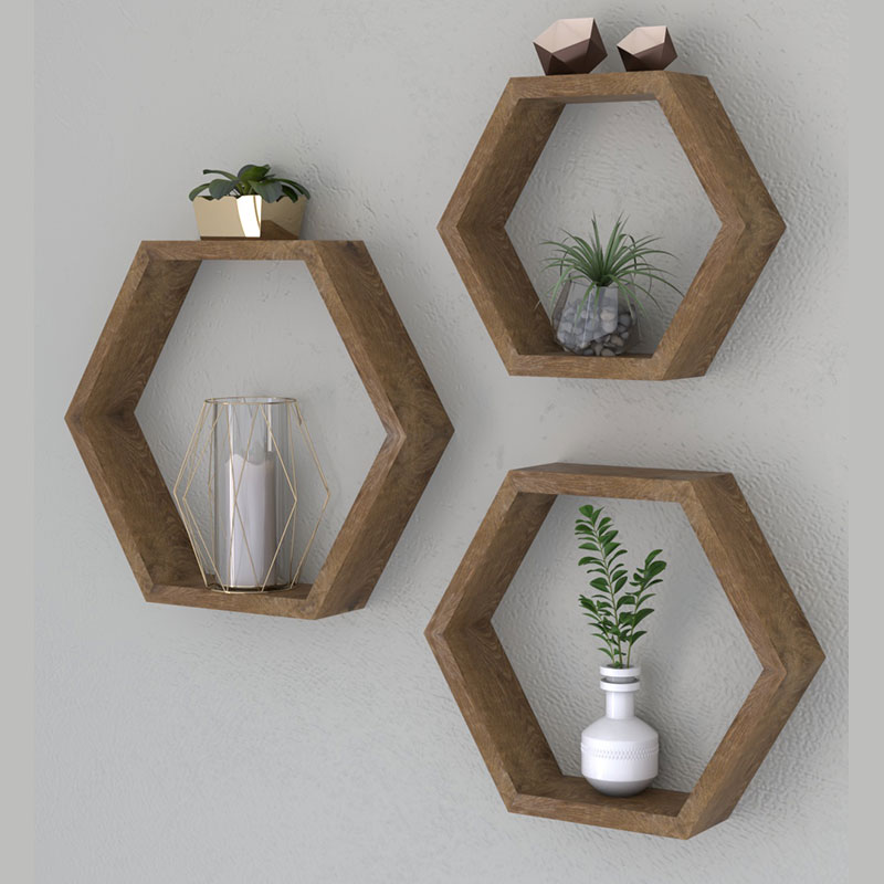 Επιτοίχια ραφιέρα τριών πολυγωνικών ραφιών με πρωτοποριακό design. Ένα εύχρηστο έπιπλο για κάθε χώρο του σπιτιού ή του γραφείου.