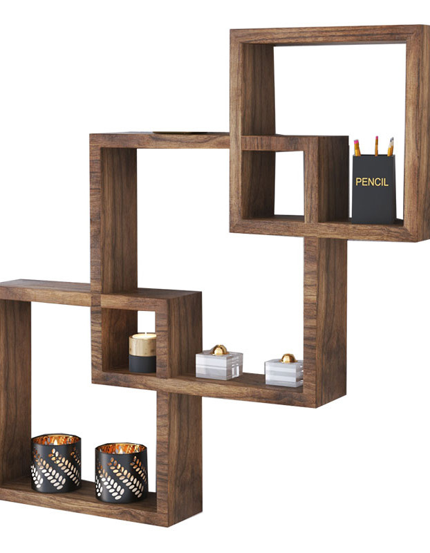 Επιτοίχια ραφιέρα τριών τετράγωνων ραφιών σε σύνθεση και με ένα πρωτοποριακό design. Ένα εύχρηστο έπιπλο για κάθε χώρο του σπιτιού ή του γραφείου.