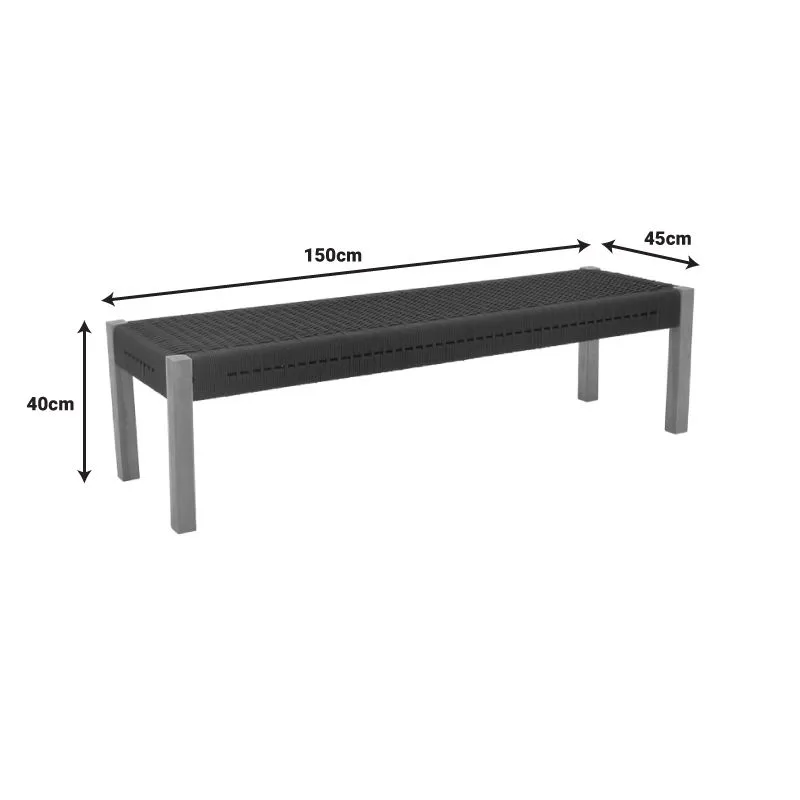 Παγκάκι Uma pakoworld teak ξύλο και pe σχοινί σε μαύρη απόχρωση 150x45x40εκ. κωδ. 0060-340-000015