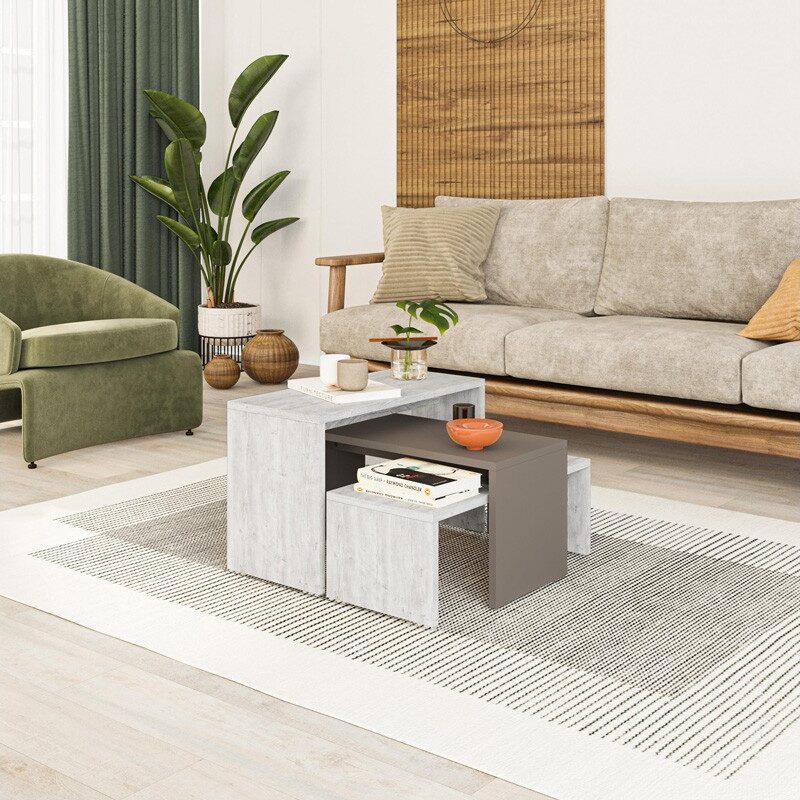 Τραπεζάκι Σαλονιού Σετ 2 τμχ Elips χρ. Γκρι Ρετρό 116x46x46εκ. κωδ. 0711-0248445