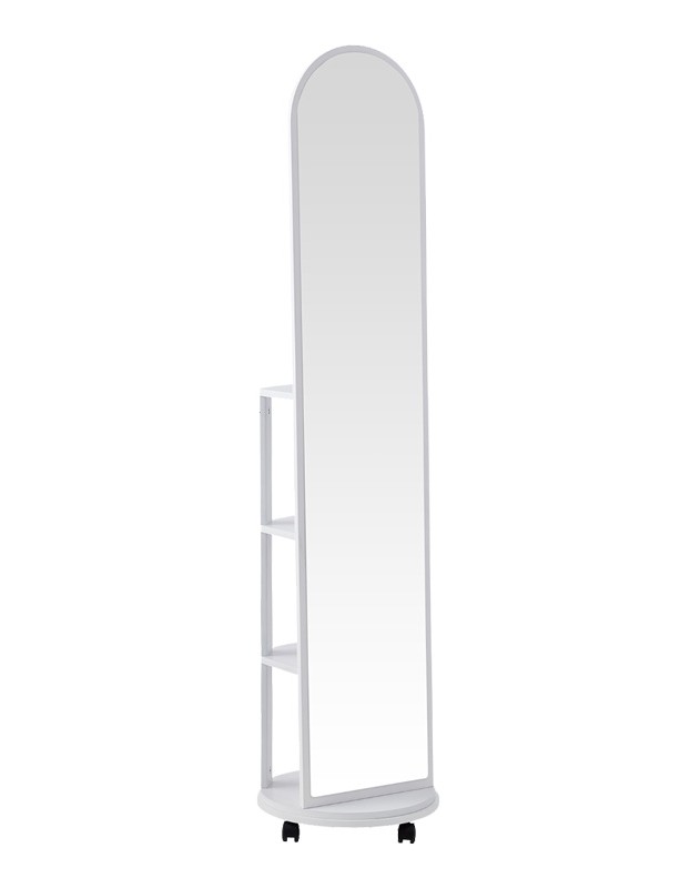 Καθρέπτης τροχήλατος Espero pakoworld mdf με ράφια σε λευκή απόχρωση Φ34×170εκ κωδ. 0060-384-000014