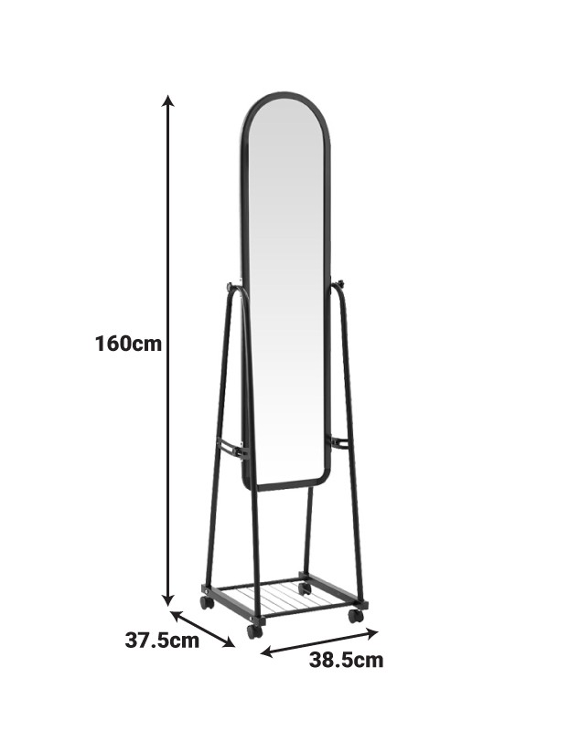 Καθρέπτης τροχήλατος Lomna pakoworld pp-μεταλλικός με ράφι σε μαύρη απόχρωση 38.5×37.5×160εκ κωδ. 0060-384-000009