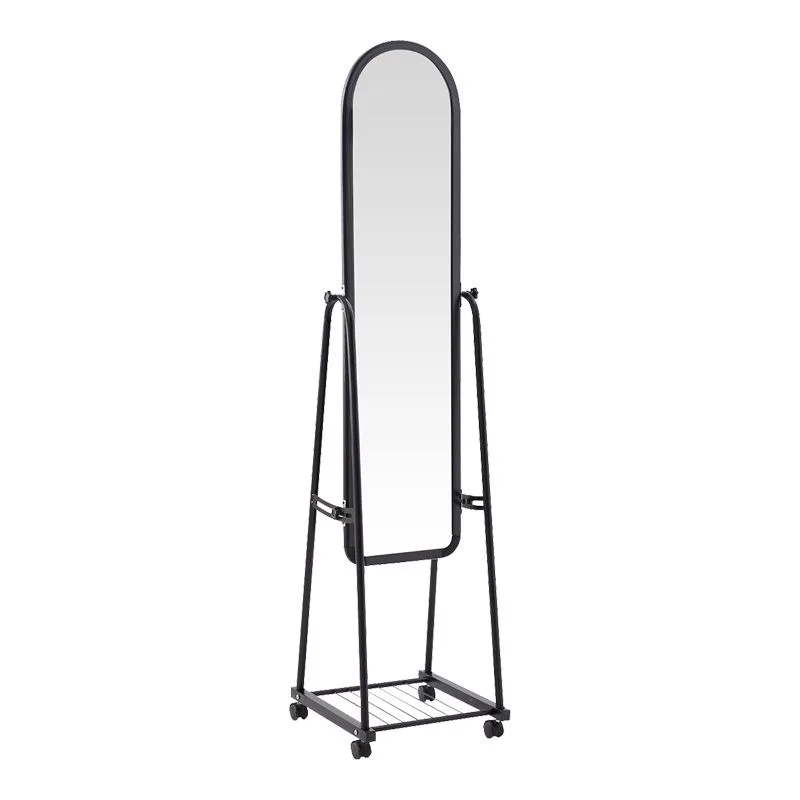 Η στιβαρή κατασκευή εξασφαλίζει ανθεκτικότητα, ενώ οι ενσωματωμένες ρόδες επιτρέπουν την εύκολη μετακίνηση του καθρέφτη ανάλογα με τις ανάγκες σας. Επιπλέον, το πρακτικό ράφι αποθήκευσης στη βάση παρέχει έναν βολικό χώρο για την οργάνωση μικροαντικειμένων, όπως καλλυντικά, αξεσουάρ ή ακόμα και μικρά διακοσμητικά στοιχεία.
