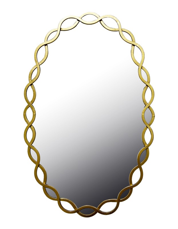 Προσθέστε μια πινελιά διαχρονικής κομψότητας στον χώρο σας με αυτόν τον εντυπωσιακό οβάλ καθρέφτη τοίχου. Το ιδιαίτερο πλαίσιο του, σχεδιασμένο να μοιάζει με ένα περίτεχνο χρυσό στεφάνι, προσδίδει μια αίσθηση πολυτέλειας και καλλιτεχνικής φινέτσας.