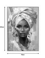 Ζωγραφισμένος σε καμβά, ο πίνακας Gazel είναι ενα έργο τέχνης που αποτυπώνει δυναμικά και με ακρίβεια την γυναικεία γοητεία αλλά και την καλλιτεχνική έκφραση, με έντονη την αίσθηση μυστηρίου, ενώ το τουρμπάνι της προσθέτει μια ανατρεπτική νότα στο σύνολο της εικόνας. Αυτός ο πίνακας σίγουρα θα τραβήξει τα βλέματα και θα δώσει αυτήν την αίσθηση δυναμισμού σε κάθε χώρο.