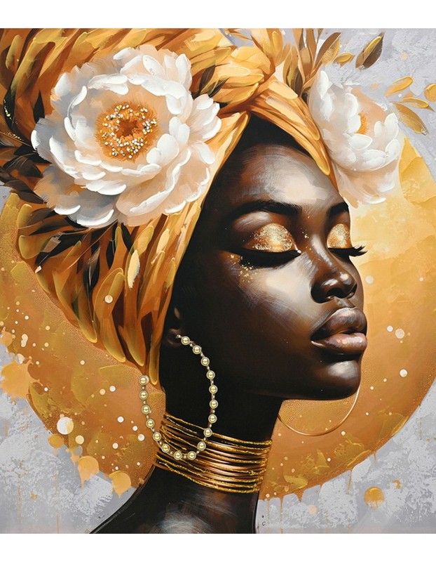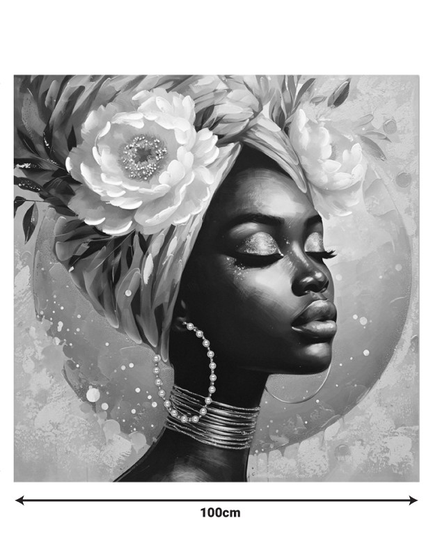 Ο πίνακας σε καμβά Giara είναι ένα όμορφο και εντυπωσιακό έργο τέχνης που γιορτάζει την ομορφιά και την πολιτιστική ταυτότητα των γυναικών. Τα χαρακτηριστικά της είναι απαλά και γλυκά, προκαλώντας μια αίσθηση ηρεμίας και εσωτερικής ομορφιάς.
