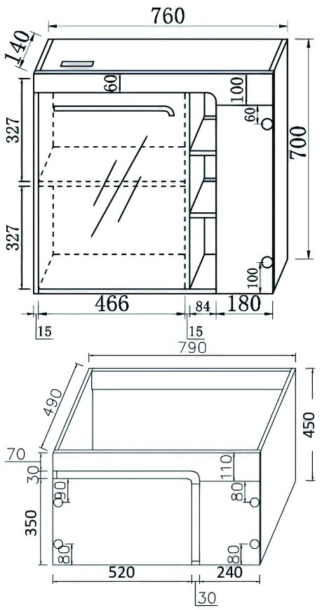 Σετ Πάγκου PENELOPE 80cm χρ.CREAM WHITE κωδ. S3BPEN080CW