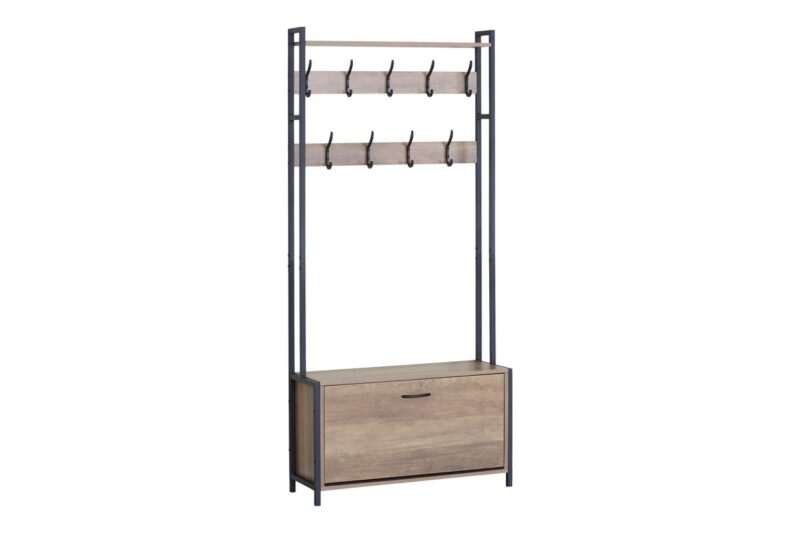 Το πολυλειτουργικό έπιπλο Ventoria είναι η ιδανική λύση για να διατηρήσετε την είσοδο, τον διάδρομο ή ακόμα και το υπνοδωμάτιό σας τακτοποιημένο και κομψό. Συνδυάζοντας κρεμάστρα ρούχων, παπουτσοθήκη και ένα πρακτικό παγκάκι, προσφέρει μέγιστη λειτουργικότητα σε έναν μοντέρνο βιομηχανικό σχεδιασμό.