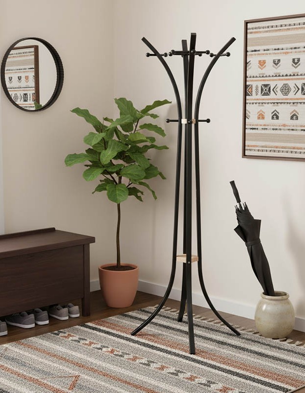 Καλόγερος ρούχων Bamile pakoworld μαύρο μέταλλο και rubberwood σε φυσική απόχρωση 51x63x175εκ