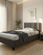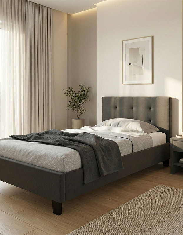 Ανανεώστε την κρεβατοκάμαρα σας, βάλτε μία δόση πολυτέλειας στο χώρο και αποκτήστε έναν ξεκούραστο ύπνο με το κρεβάτι Mago. Mία υψηλής ποιότητας κατασκευή από ενισχυμένο ξύλινο σκελετό, επενδυμένο 100% με ύφασμα σε ανθρακί χρώμα. Το κεφαλάρι φέρει διακόσμηση με καμπαράδες, ενώ περιλαμβάνει ανατομικές τάβλες για την καλύτερη δυνατή άνεση σας.