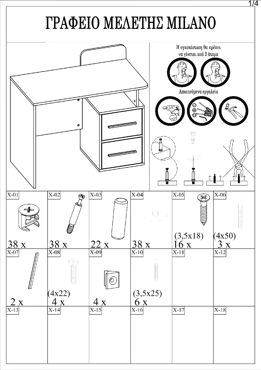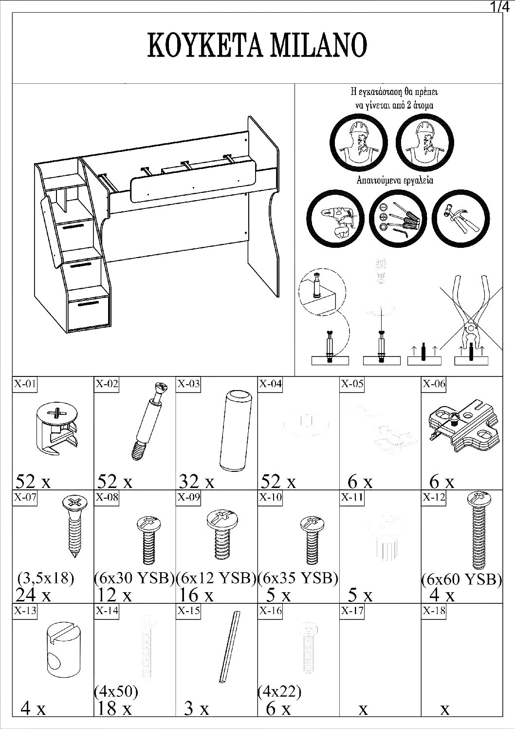 Οδηγίες μονταρίσματος: ΚΟΥΚΕΤΑ MILANO , ΚΡΕΒΑΤΙ MILANO , ΓΡΑΦΕΙΟ ΜΕΛΕΤΗΣ MILANO