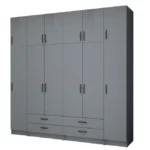 Ντουλάπα ρούχων Ricardo Megapap εξάφυλλη με πατάρι και συρτάρια χρώμα ανθρακί 240×61,8×240εκ.