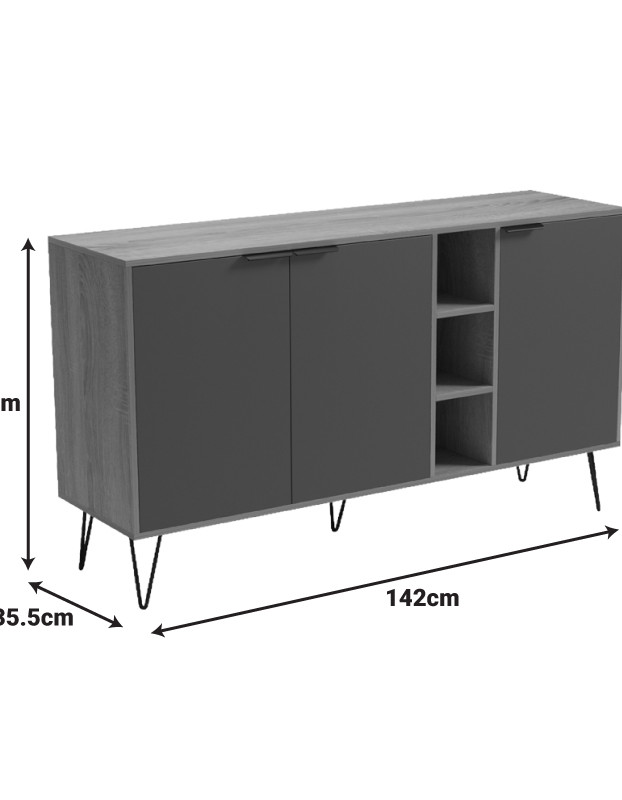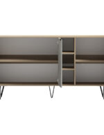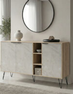 Ο μπουφές Balain αποτελεί μια μοντέρνα και λειτουργική προσθήκη στον χώρο σας, ιδανική για το σαλόνι, την τραπεζαρία ή έναν ευρύχωρο διάδρομο. Συνδυάζει την πρακτική αποθήκευση με μια κομψή αισθητική, χάρη στiς καθαρες του γραμμες αλλα και τα ιδιαίτερα πόδια.