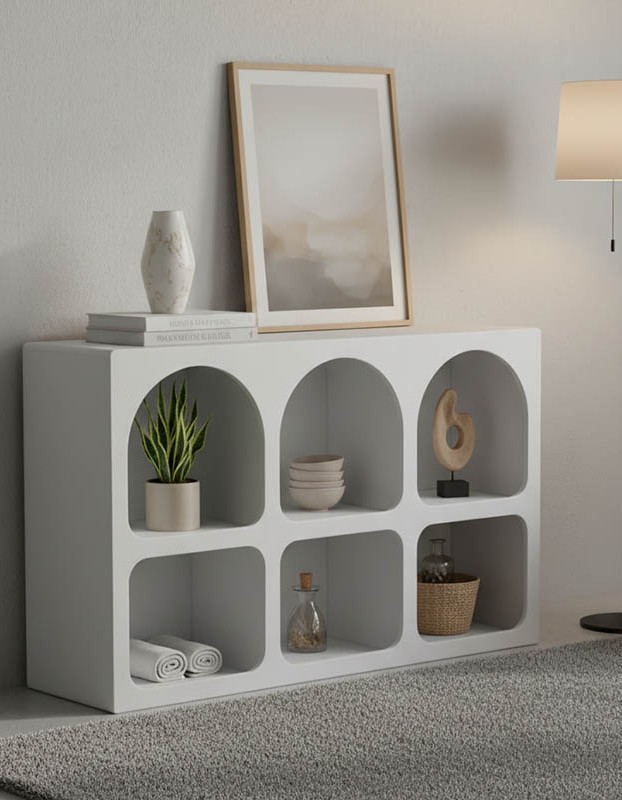 - Διαθέτει έξι ράφια για την στήριξη και οργάνωση αντικειμένων αλλά και διακοσμητικών συνθέσεων.