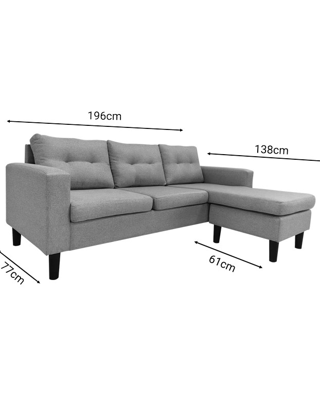 Γωνιακός καναπές αναστρέψιμος Maneli pakoworld ύφασμα ανθρακί 196×138/77×82εκ κωδ. 0060-272-000001