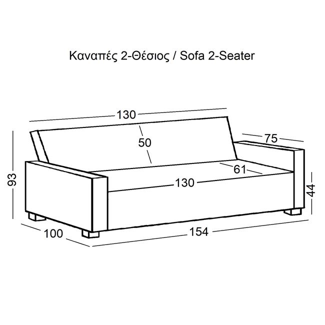 Διαστάσεις Καναπέ: 154x100x93 εκ.