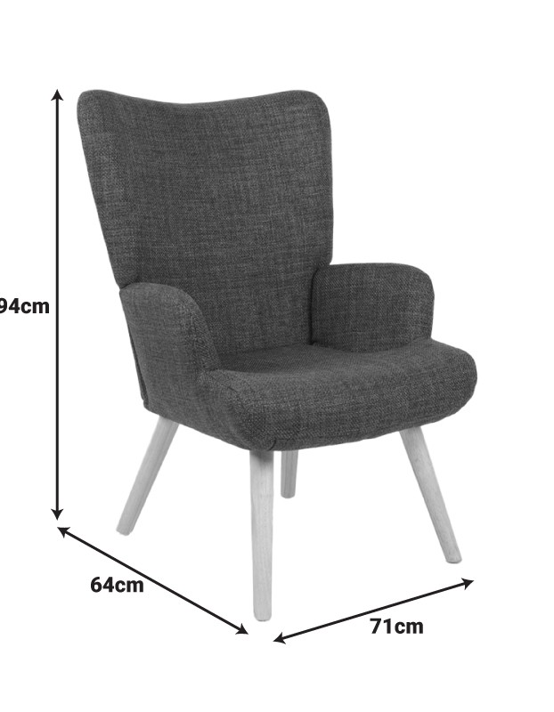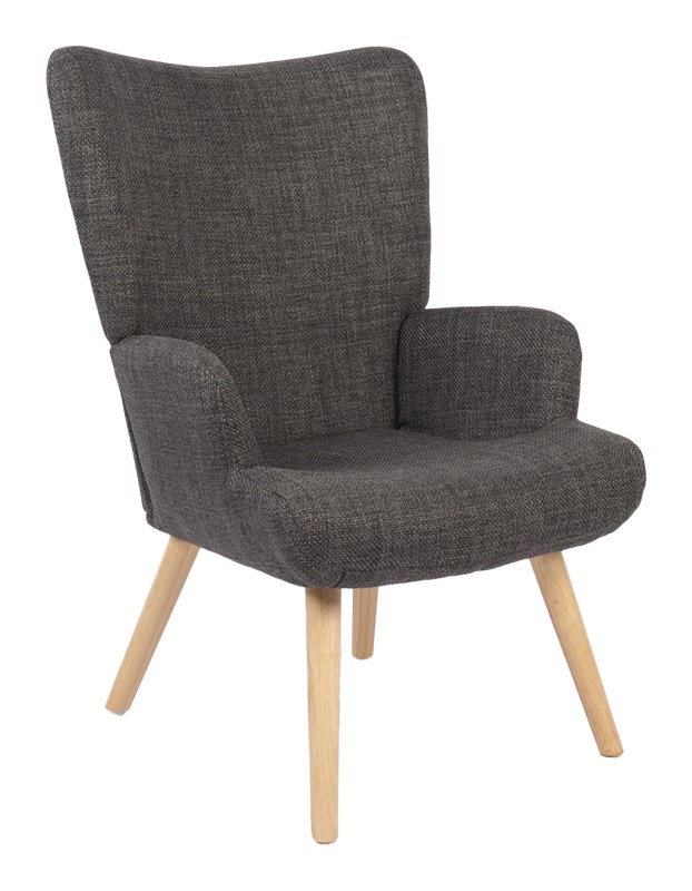 Πολυθρόνα-μπερζέρα Gerlina pakoworld ανθρακί ύφασμα με πόδι σε φυσική απόχρωση 71x64x94εκ κωδ. 0060-393-000001