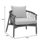 Πολυθρόνα Haribo pakoworld φυσικό teak ξύλο-μαύρο σχοινί-λευκο μαξιλάρι 80x76x72εκ. κωδ. 0060-335-000004