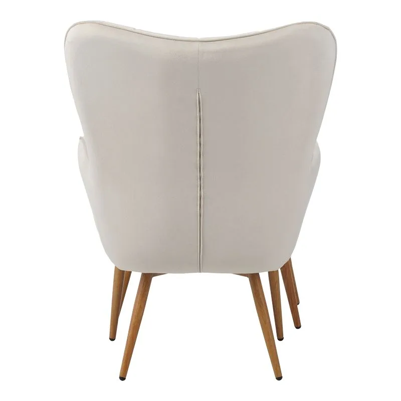 Πολυθρόνα Maddison με υποπόδιο-μαξιλάρι pakoworld κρεμ βελούδο-πόδι φυσικό 68x72x98εκ