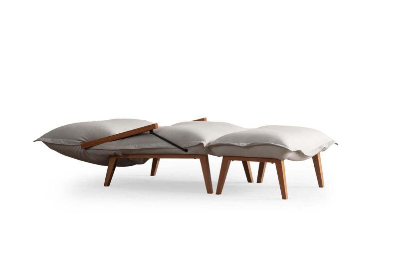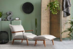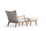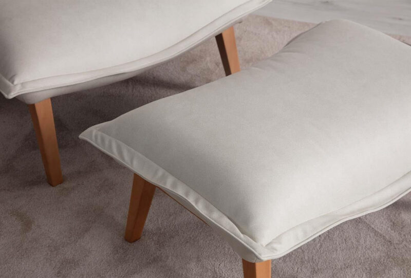 Λευκή πολυθρόνα με ξύλινο σκελετό και υποπόδιο