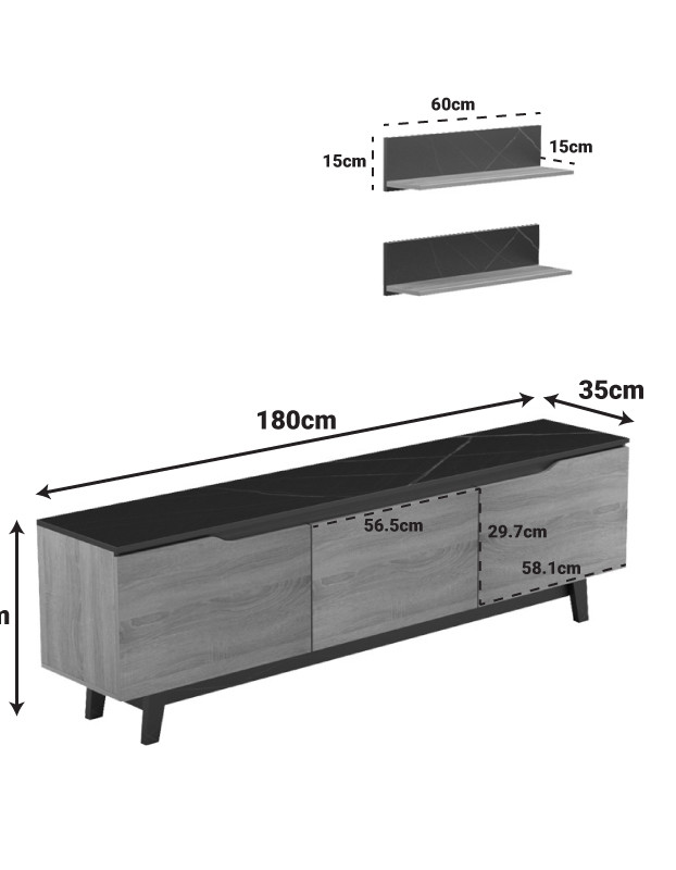 Σύνθετο σαλονιού Kasia pakoworld μπεζ μαρμάρου-sonoma 180x35x48.5εκ κωδ. 0060-230-000078