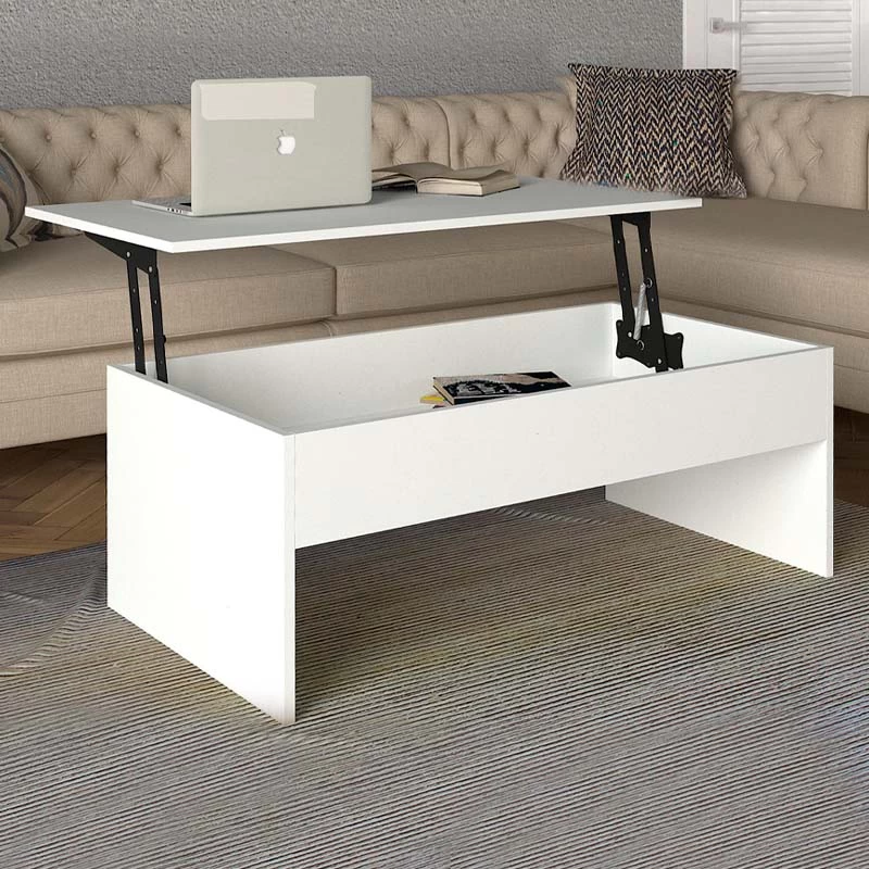 Το τραπεζάκι σαλονιού DIVINE διαθέτει μηχανισμό που επιτρέπει να σηκωθεί η επιφάνεια του σε θέση σερβιρίσματος για το φαγητό ή το laptop, δημιουργώντας χώρο για την αποθήκευση αντικειμένων στο εσωτερικό του.