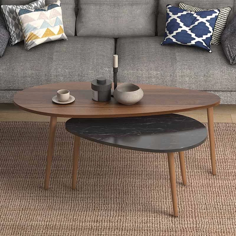 Τραπεζάκι Σαλονιού Σετ 2 τμχ EVRIDIKI από μελαμίνη χρώμα καρυδί – μαύρο εφέ μαρμάρου 116x46x46εκ. κωδ.0711-221432