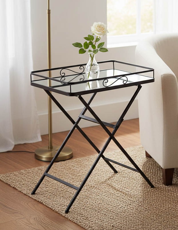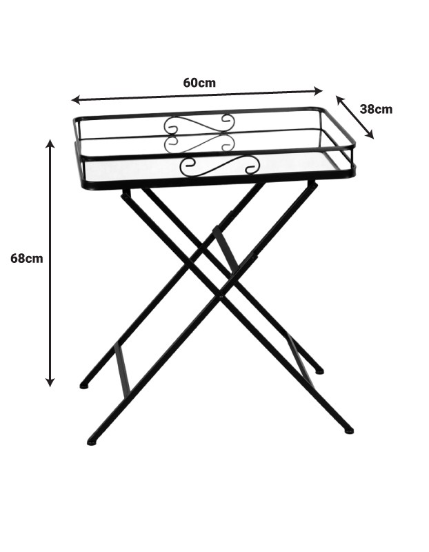 Τραπέζι Joene Inart πτυσσόμενο μαύρο μέταλλο-γυαλί καθρέπτη 60x38x68εκ κωδ. 0060-352-000009