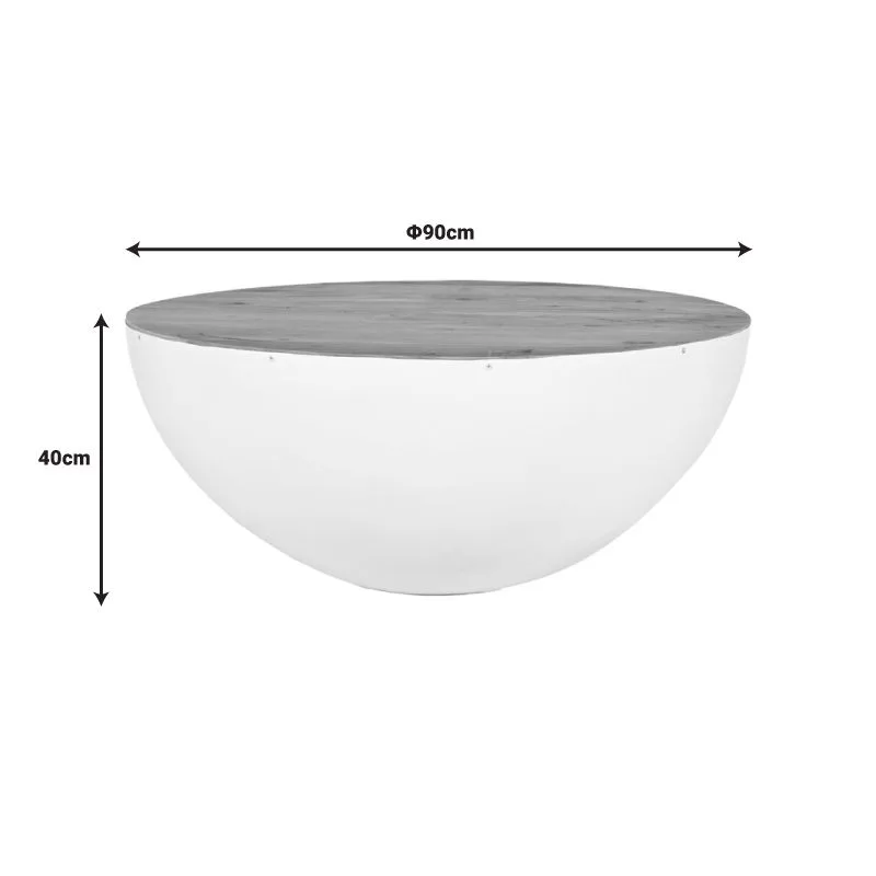 Τραπέζι σαλονιού Coffelty Inart μασίφ ξύλο ακακίας – λευκό μέταλλο Φ90×40εκ. κωδ.0060-372-000015