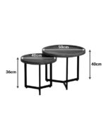 Τραπεζάκι σαλονιού σετ 3 τμχ EFTERPI χρώμα μαύρο εφέ μαρμάρου Φ60×46εκ. κωδ.0711-248449