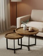 Τραπέζι σαλονιού Kelly pakoworld σετ 2τεμ pakoworld mango ξύλο σε φυσική-μαύρη απόχρωση κωδ. 0060-372-000026