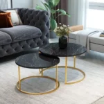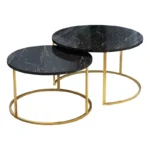 Τραπέζια σαλονιού Solme pakoworld σετ 2τεμ μαύρο μάρμαρου μελαμίνης-χρυσό μέταλλο