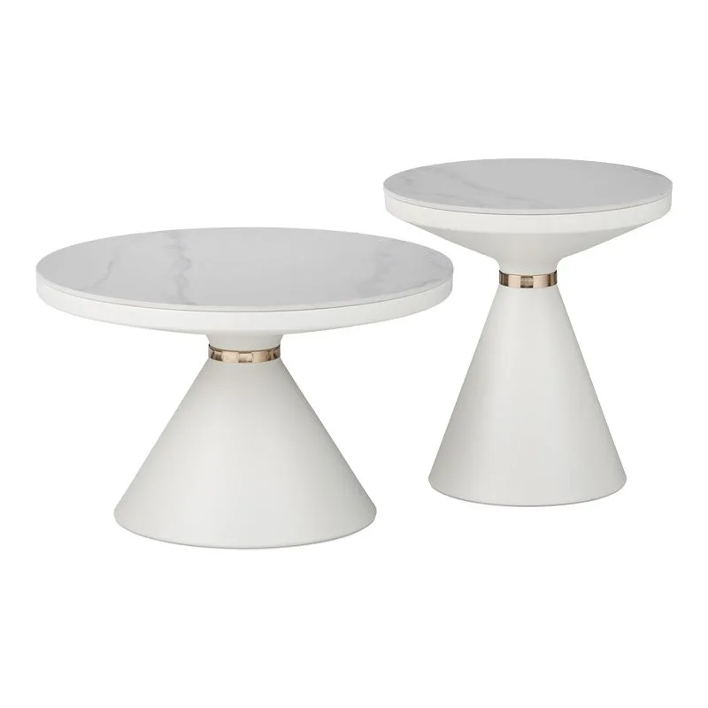 Βοηθητικά τραπέζια Coozlin Inart sintered stone σε απόχρωση λευκό μαρμάρου με λευκό-χρυσό μέταλλο κωδ.0060-029-000320