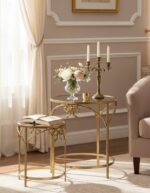 Προσθέστε μια πινελιά μοντέρνας κομψότητας στον εσωτερικό σας χώρο με αυτό το μοναδικό σετ μεταλλικών βοηθητικών τραπεζιών Frensia. Ο μινιμαλιστικός αλλά εντυπωσιακός σχεδιασμός τους, με το στρογγυλό επάνω μέρος και τη βάση, καθώς και οι διακριτικές τους καμπύλες, τα καθιστούν ένα ευέλικτο κομμάτι που ταιριάζει σε κάθε διακόσμηση.