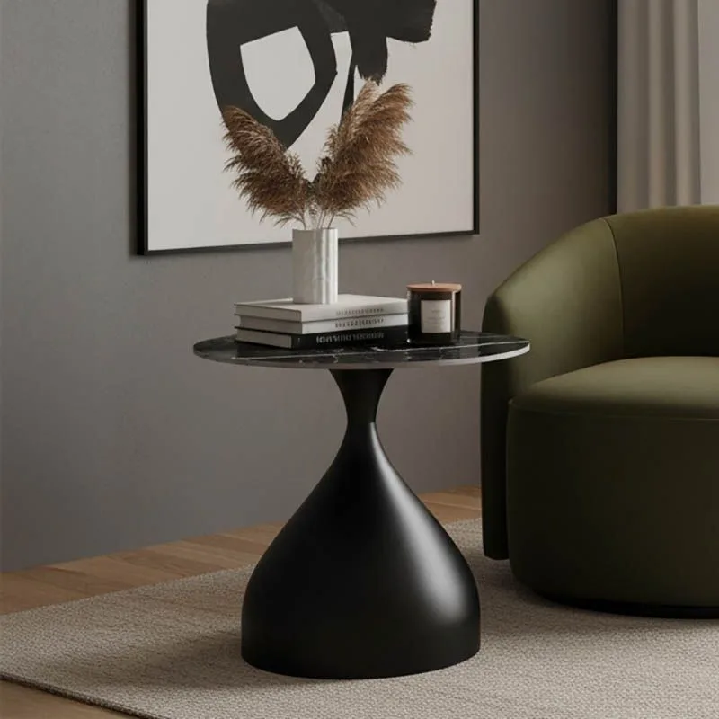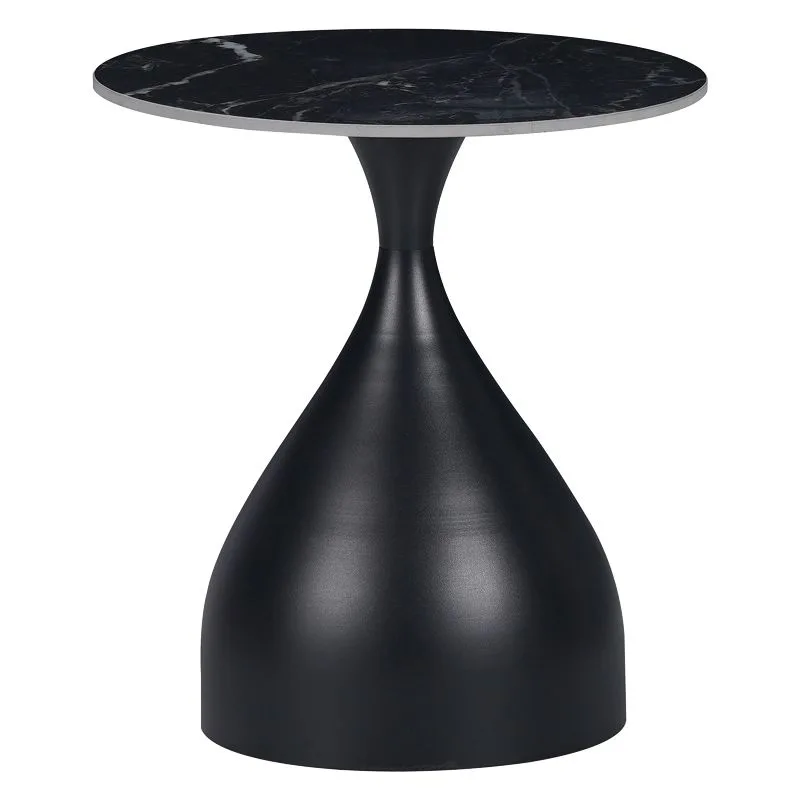Βοηθητικό τραπέζι Kirkene sintered stone σε απόχρωση μαύρο μαρμάρου με μαύρο μέταλλο Φ50×50εκ
