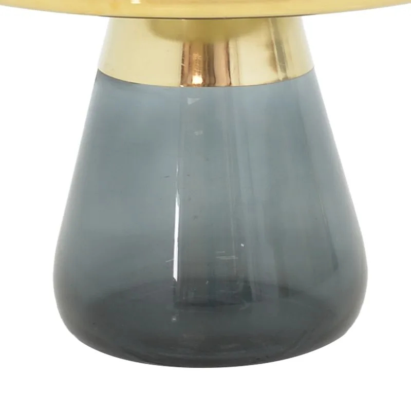 Βοηθητικό τραπέζι Kunlo χρυσό χρώμιο-μαύρο γυαλί Φ60×42εκ