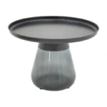 Βοηθητικό τραπέζι Kunlo μαύρο μέταλλο-μαύρο γυαλί Φ60×42εκ