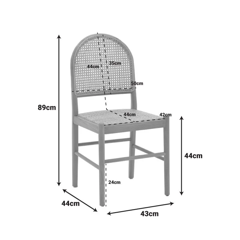*Έδρα και πλάτη επενδεδυμένα με rattan σε χρώμα φυσικό.