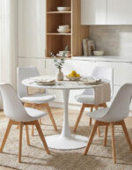 Τραπεζαρία Balou-Gaston σετ 5τεμ pakoworld MDF και pp σε λευκή-φυσική απόχρωση Φ100×75εκ κωδ. 0060-200-000472