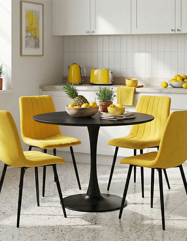 Τραπεζαρία Balou-Noor pakoworld σετ 5τεμ MDF μαύρο-κιτρινο Φ100×73εκ κωδ. 0060-200-001422