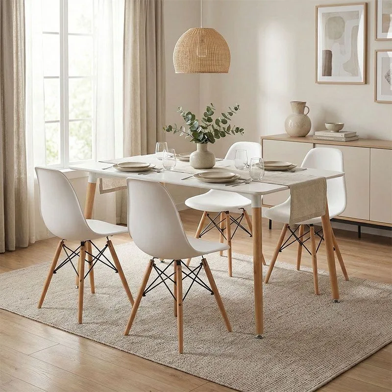 Τραπεζαρία Natali-Julita σετ 5τεμ pakoworld MDF και pp σε λευκή-φυσική απόχρωση 120x80x76εκ