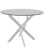 Τραπέζι Antoro pakoworld γυαλί και μεταλλικά πόδια σε λευκή απόχρωση Φ80×75εκ κωδ. 0060-292-000114