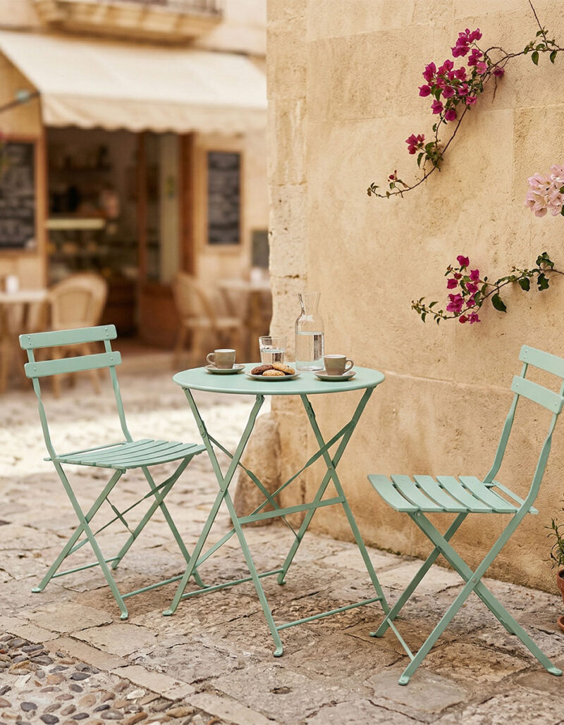 Αναβαθμίστε τον εξωτερικό σας χώρο με αυτό το εντυπωσιακό, σετ bistro! Ιδανικό για να απολαύσετε τον πρωινό σας καφέ, ένα χαλαρό γεύμα ή ένα ποτήρι κρασί στο μπαλκόνι, την αυλή ή τον κήπο σας.